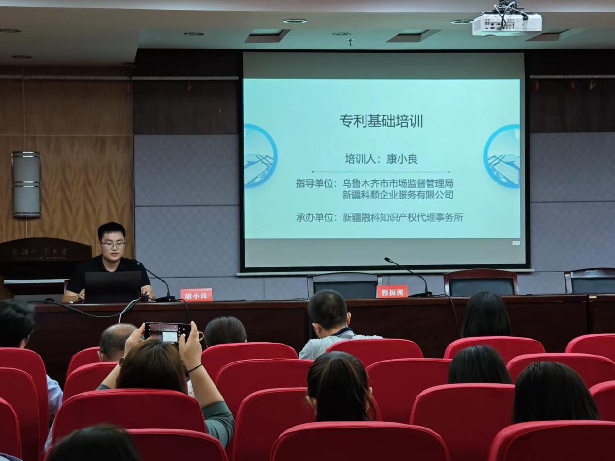 培训邀请了新疆融科知识产权代理事务所专利部主管康小良老师,他从专利基础知识、技术交底书、专利检索、专利挖掘、专利非正常审查等方面做了详细的介绍,并对专利申请过程中需要注意的地方进行了细致讲解。培训中,师生们就自己在专利申报中遇到的问题与康老师进行了交流。