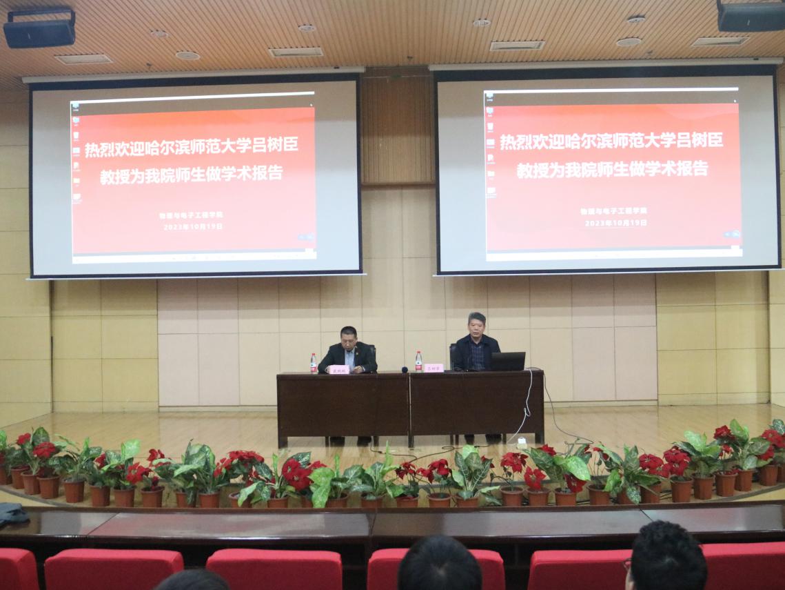 10月19日,哈尔滨师范大学吕树臣教授应我院邀请,在昆仑校区国教楼三楼会议室作了题为“稀土掺杂钨(钼)酸盐基纳米红色荧光粉的制备和发光性质的研究”的学术报告。报告由taptap点点体育副院长戴鹏鹏教授主持。学院领导及师生共计200余人听取了报告。