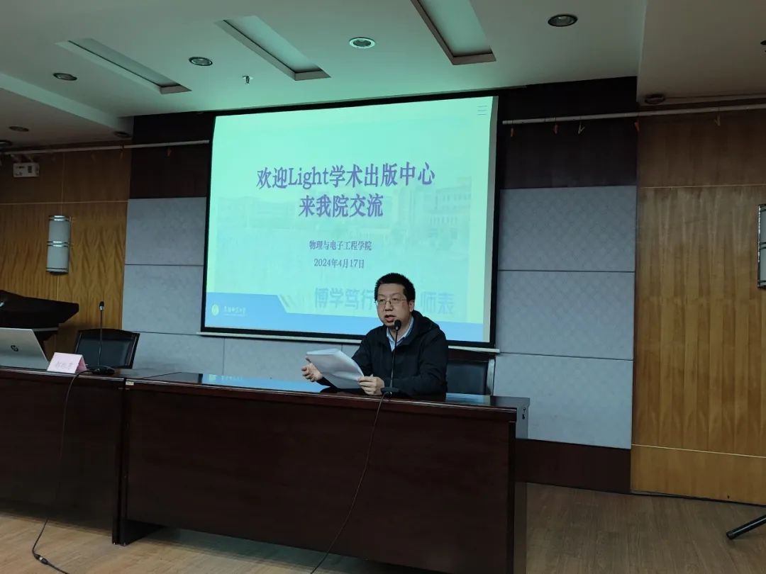 为进一步提升师生科研能力和学术写作水平,为师生提供优质科研成果展示平台,4月17日,taptap点点体育特邀Light学术出版中心总编、《Light: Science & Applications》(影响因子19.4)学术编辑李耀彪研究员和Light学术出版中心副总编、《Light:Science & Applications》学术编辑郝振东到学院进行学术讲座。讲座由副院长戴鹏鹏主持,全体研究生和培优班学生共100余人聆听讲座。