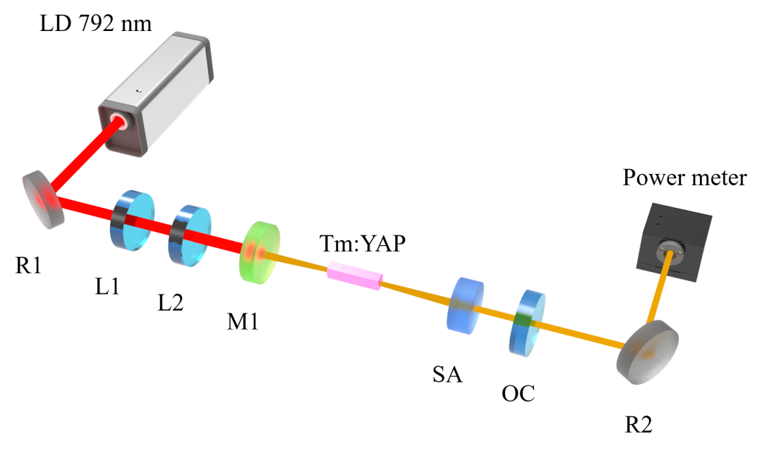 图2基于Mo2TiAlC2-SA的Tm:YAP激光器实验装置