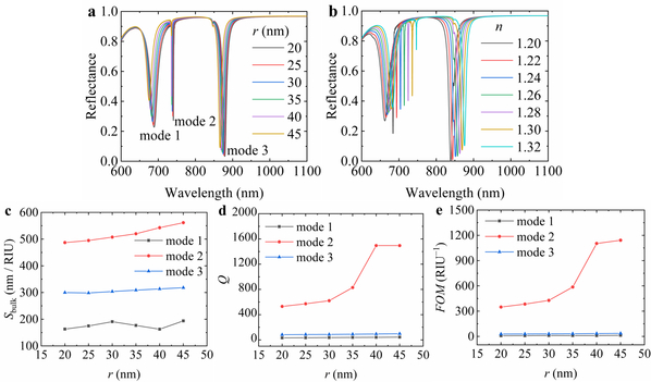 图2 混合空心圆柱四聚体阵列的传感特性变化图