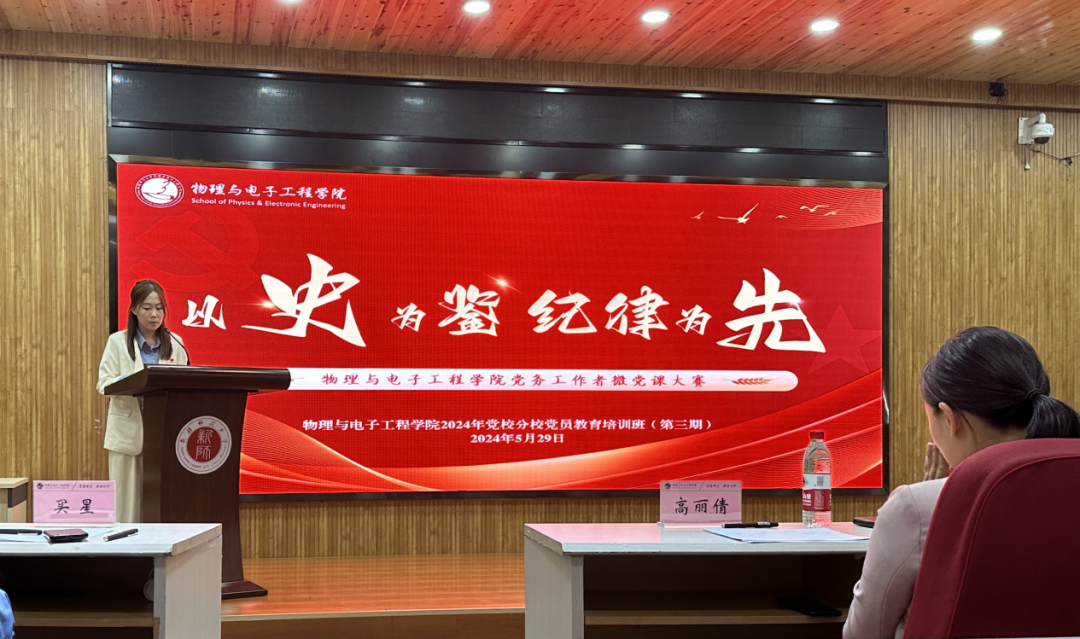 为推动党纪学习教育走深走实,增强党纪学习教育的针对性、生动性、思想性,充分挖掘党史和党纪中的红色故事、名家事迹、纪律印记和廉洁元素,切实提升全院师生党员的理论素养和政治自觉,5月29日,taptap点点体育在文史楼二楼议课厅开展了“以史为鉴、纪律为先”党务工作者微党课大赛。比赛评委由党委书记李莉、党委副书记、院长向梅、学术院长程振洲、党委副书记、纪委书记买星和地理科学与旅游学院党委副书记、纪委书记高丽倩担任。共有12名党务工作者参加比赛,学院全体师生党员在现场观摩。
