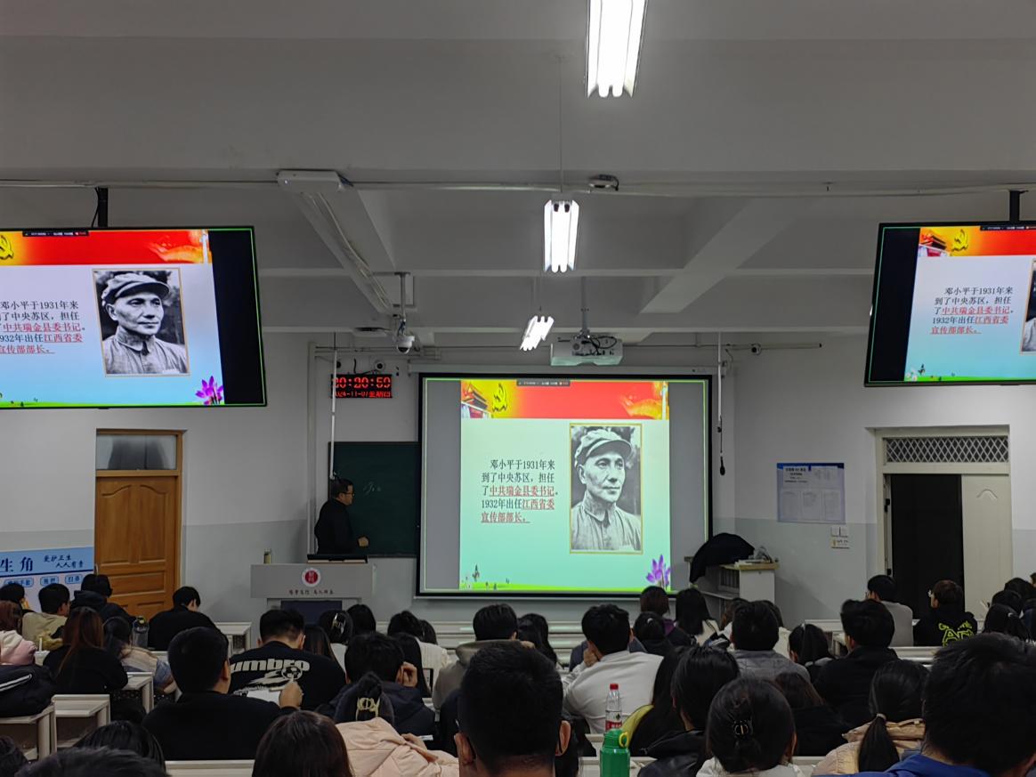 本次培训共设置5个学习专题。马克思主义学院党委副书记,纪委书记吴常柏以《邓小平的丰功伟绩——纪念邓小平同志诞辰120周年》为题,从多方角度带领大家学员了解邓小平同志波澜壮阔的一生,让同学们明白了邓小平不仅是一位杰出的政治家,军事家,更是一位伟大的思想家和改革家。