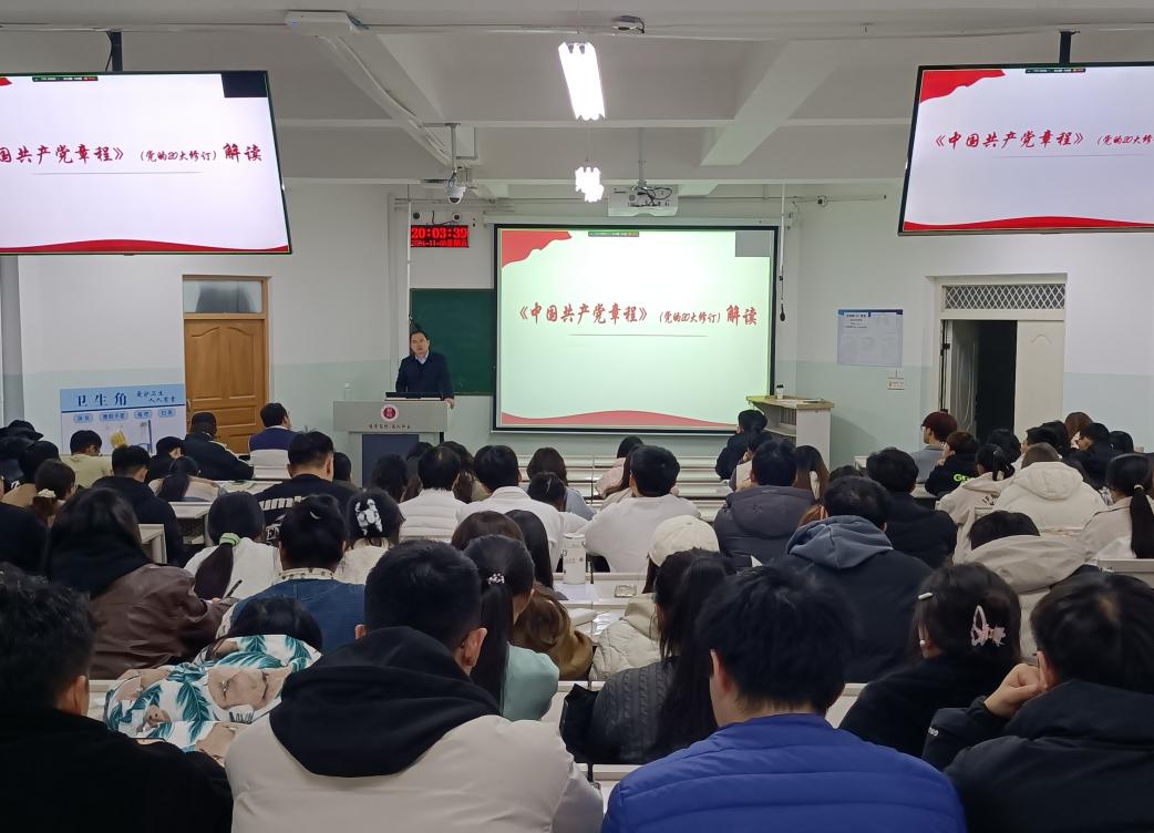 政法学院教授朱宪臣以《党内法规解读》为题,解读了最新版《中国共产党章程》。详细介绍了什么是党章,为什么要对党章进行修改,二十大对党章做了哪些修改,党章修改的历史以及党章的主要内容,引导大家严格遵守党章的各项规定,做学习党章、遵守党章的模范,并号召大家牢记并践行入党誓词,埋头苦干、担当作为,以更加强烈的历史主动精神推进马克思主义中国化时代化,不断谱写新时代中国特色社会主义新篇章,奋力实现中华民族伟大复兴的中国梦。