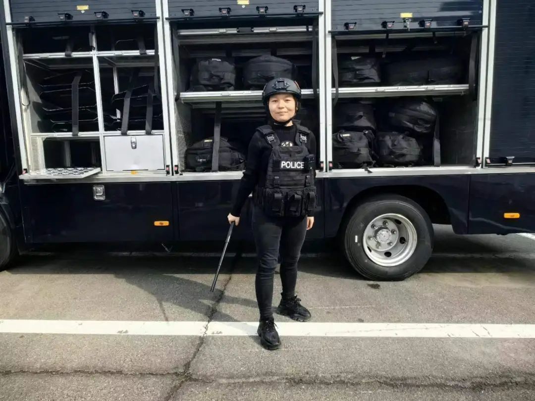 在特警支队党员同志们的带领下,同学们还亲手触摸试穿了特警的战术背心、头盔、护目镜等装备,体会特警队员工作的艰辛。