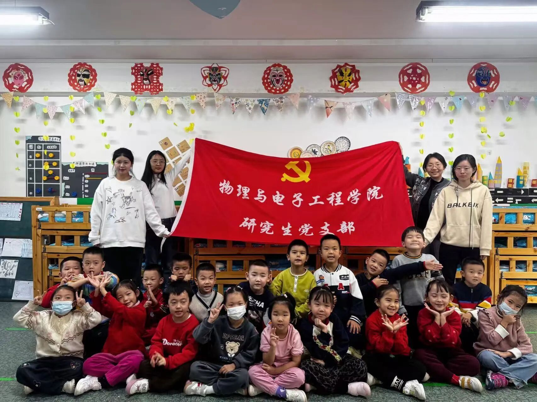 为推进中国式现代化贡献青春智慧与担当,为教育强国建设注入青年能量。2025年12月3日,taptap点点体育研究生党支部联合师大幼儿园开展第三十四期“‘大手拉小手’智行先锋队”党建品牌建设活动。本期参与活动的人员有:taptap点点体育研究生党支部的李艺、窦凤怡、焦梓欣、张瀚允四位同志。在本期活动中,他们为幼儿园小朋友带去是:“会自己跑的气泡”和“抽出神奇的纸片”实验。