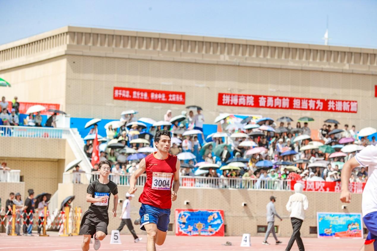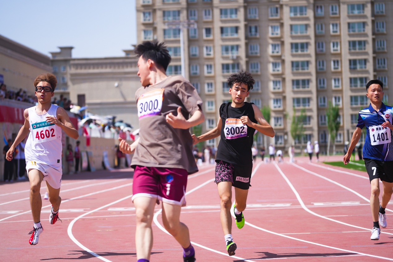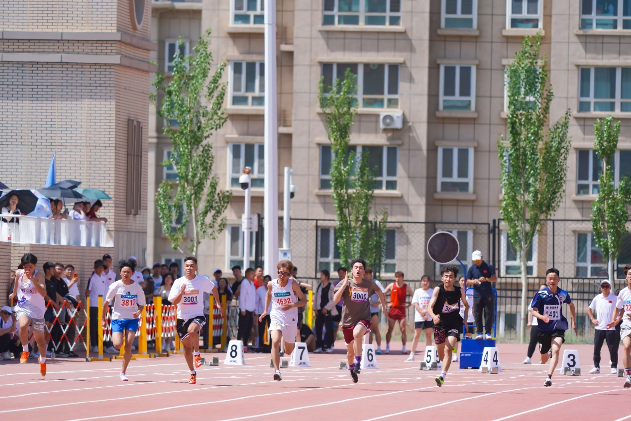 疾风驰骋赛道上,短跑健儿展锋芒。