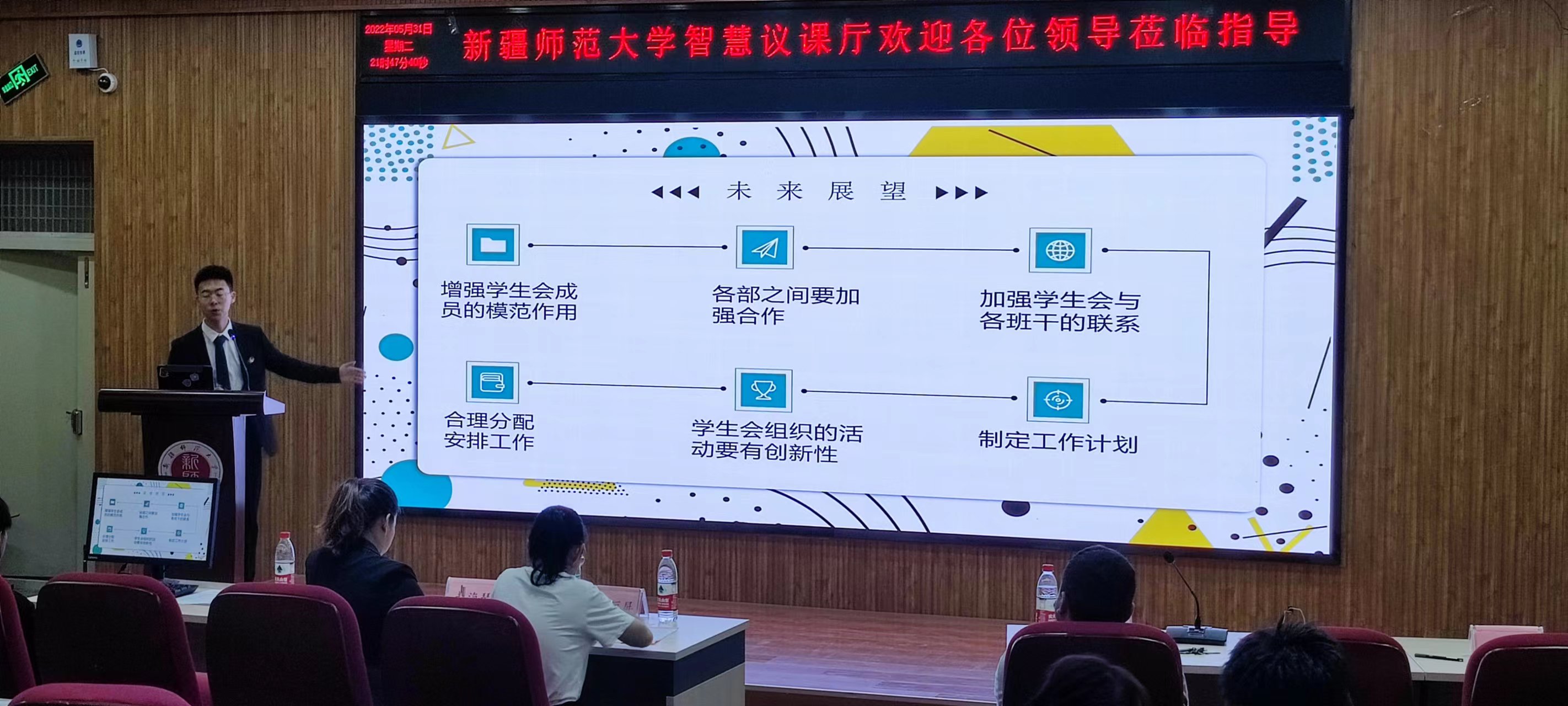 为充分发挥taptap点点体育分团委学生会的自主职能,大力促进校园文化建设,开创学生会工作新局面新气象。根据相关规定指示,我院于2022年5月31日20:30在文史楼二楼智慧教室召开taptap点点体育第二次学生代表大会。出席本次学生代表大会的有党委副书记、纪委书记买星老师、学工办主任徐丽屏老师、辅导员阿尔曼老师、辅导员赵海琴老师、辅导员范佳薇老师和校主席团成员宋京儒同学。