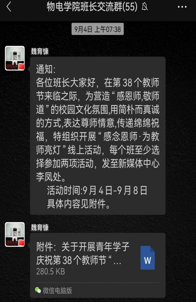 在学院班长群发布活动通知