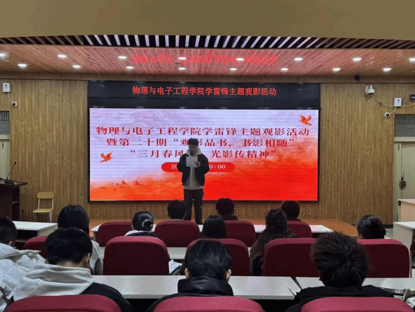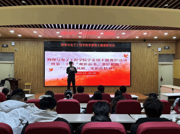 全体师生共同观看电影《青春雷锋》。影片以生动的镜头语言再现了雷锋同志平凡而伟大的一生,展现了他忠于职守、甘于奉献、艰苦奋斗的精神品格。观影过程中,同学们全神贯注,深受触动。