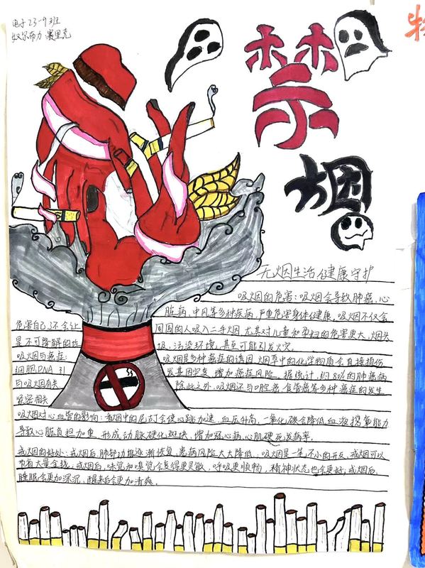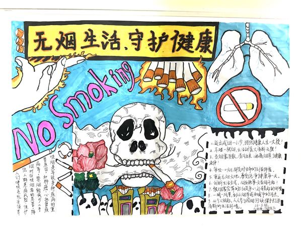 活动期间,同学们充分发挥自己的想象力与创造力,用五彩画笔在手抄报上展现对吸烟危害的深刻理解。有的同学以生动的绘画描绘吸烟对肺部的损害,有的同学用详实的数据揭示吸烟与疾病的关联,还有的同学书写充满感染力的标语倡导大家远离烟草。每份手抄报都紧扣主题,内容丰富,设计精美,充分体现了同学们对践行无缘校园的行动和对身心健康的重视程度。
