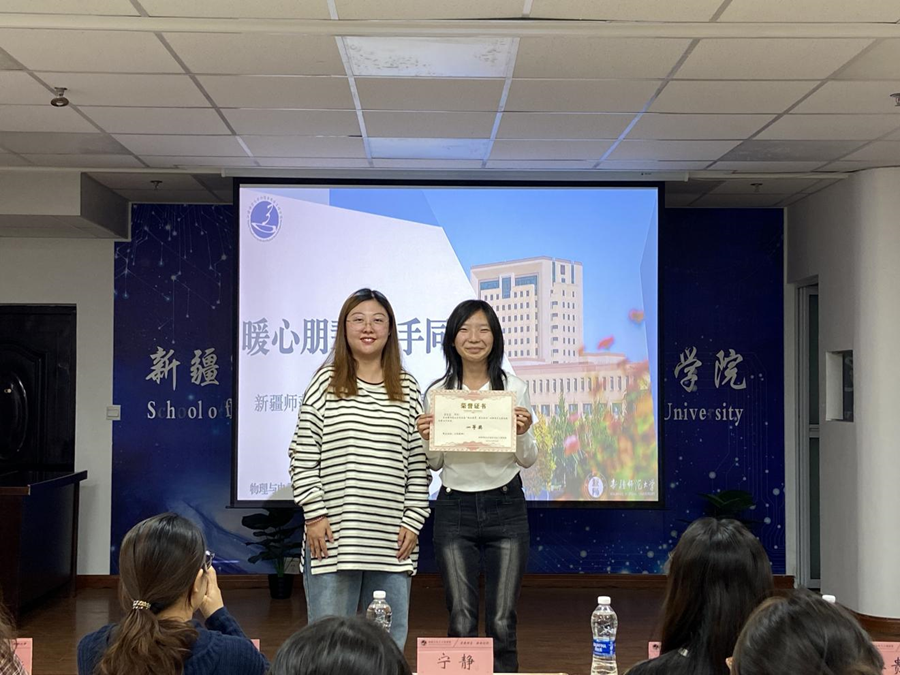 辅导员宁静老师为一等奖选手颁奖