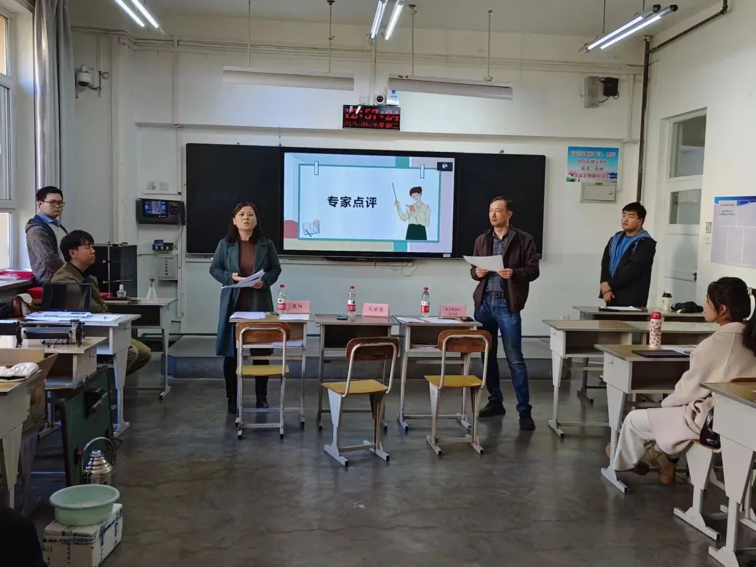 学院高度重视本次师范生教学技能竞赛,积极动员学生参赛,经专家线上初选,最终确定11名选手进入现场说课环节。参赛者提前将教学设计及课件纸质版提交至评委处,并进行5分钟现场说课。专家评委根据学生现场表现进行打分,并对参赛选手的教学设计、现场说课、教案中实施情况和所出现的问题进行公正评审和精彩点评。马丽英老师充分肯定了我院师范生的讲课水平,对比赛过程中存在的问题进行了分析,也指导学生应从“课标解读”、“教材分析”、“学情分析”、“教学目标”、“教学重、难点”、“教学过程”、“课堂小结”和“课后反思”等方面进行教学设计。