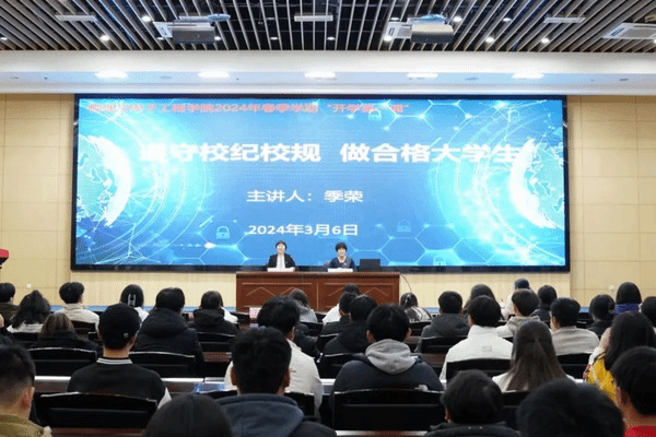 在“开学第一课”上,季荣教授以“遵守校纪校规 做合格大学生”主题,通过具体鲜活的案例和生动朴实的语言,向同学们详细讲解了我校学生违纪处分的总体状况、违纪处分的注意说明、申诉程序、申诉程序等内容。季荣校长希望同学们要铸牢中华民族共同体意识,守住做一名合格学生的底线,发挥朋辈榜样作用,锻炼自身综合能力,踔厉奋发、勇毅前行,以实际行动展现出新时代青年学子昂扬向上的精神风貌,为祖国的建设贡献青春力量。