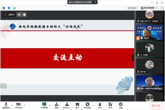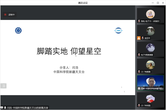 为助力“培优人才”培养,更好谋划学生个人发展,持续促进学生职业能力成长,12月14日下午,taptap点点体育邀请学院优秀校友、中国科学院新疆天文台闫浩博士在线上开展“对话成长”活动,活动由电子信息科学与技术系主任赵忠华主持,全体电子信息科学与技术专业学生参加。