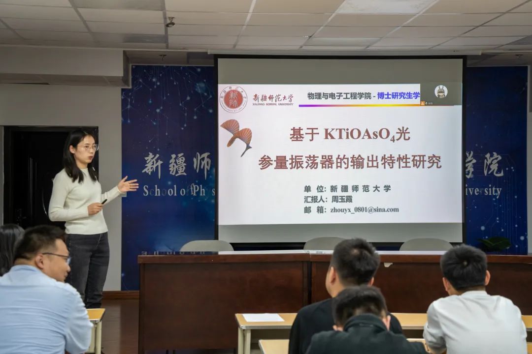 博士论坛采取线上线下结合方式举行,报告人分别是中国科学技术大学在读博士研究生程静、扎吾热·阿斯了汉和taptap点点体育在读博士研究生罗玲、周玉霞。程静以“TM@Sn12团簇磁学性能的电学调控”为主题,扎吾热·阿斯了汉以“液晶拓扑孤子的集体动力学研究”为主题,周玉霞以“基于KTiOAsO4光参量振荡器输出特性的研究”为主题,罗玲以“新疆发光矿物启发的Eu2+激活石榴石结构超宽带红色荧光粉”为主题,分别汇报分享了自己的近期研究工作和学习经验。