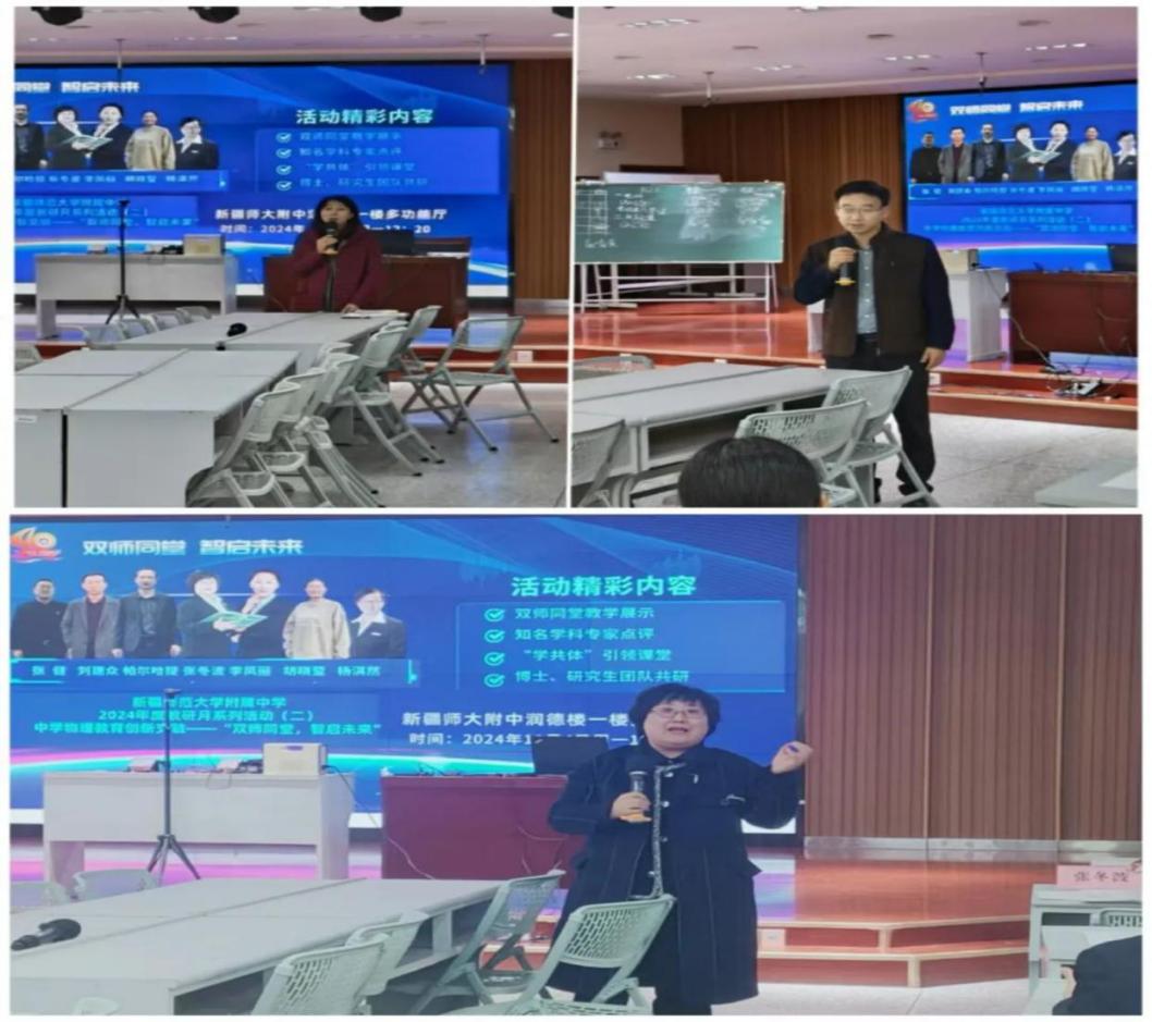 为提高本科师范类培优班学生的教育教学能力,促进师范生专业成长,11月4日,taptap点点体育联合师大附中开展了培优班实习生优质示范课教学研讨活动。taptap点点体育副院长帕尔哈提江·吐尔孙、附属中学副校长李凤丽、物理系教研室主任赵方、“天山英才”教学名师张冬波教授及taptap点点体育青年博士教师、附属中学教师和学科教学(物理)研究生、物理学2022级培优班实习生参加活动。活动由附中物理教研组长胡晓莹老师主持。