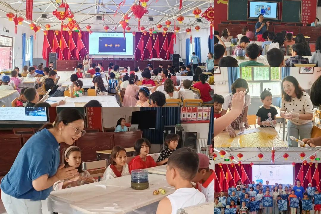 活动中,在邹艳波老师的引导下,孩子们一起观看了关于扎染艺术的历史起源和制作工艺的视频,聆听了宇航员王亚平讲授的天宫课堂“太空扎染:传统文化与现代科技的美妙融合”,然后就急不可待地投入了做扎染的活动中,他们尽情展示无限创意,一个个独特的艺术灵感变得具象化,一幅幅美丽的作品从手中诞生。孩子们不仅从传统手艺中觉察到“毛细现象”和“虹吸原理”,也感受了非遗之美和文化之韵。